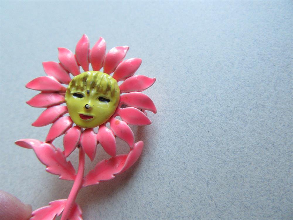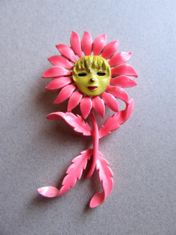 This is an original 1960's vintage anthropomorphic face daisy pin. It was made by JJ. (JJ Jonette). A must for the JJ or anthropomorphic pin collector.