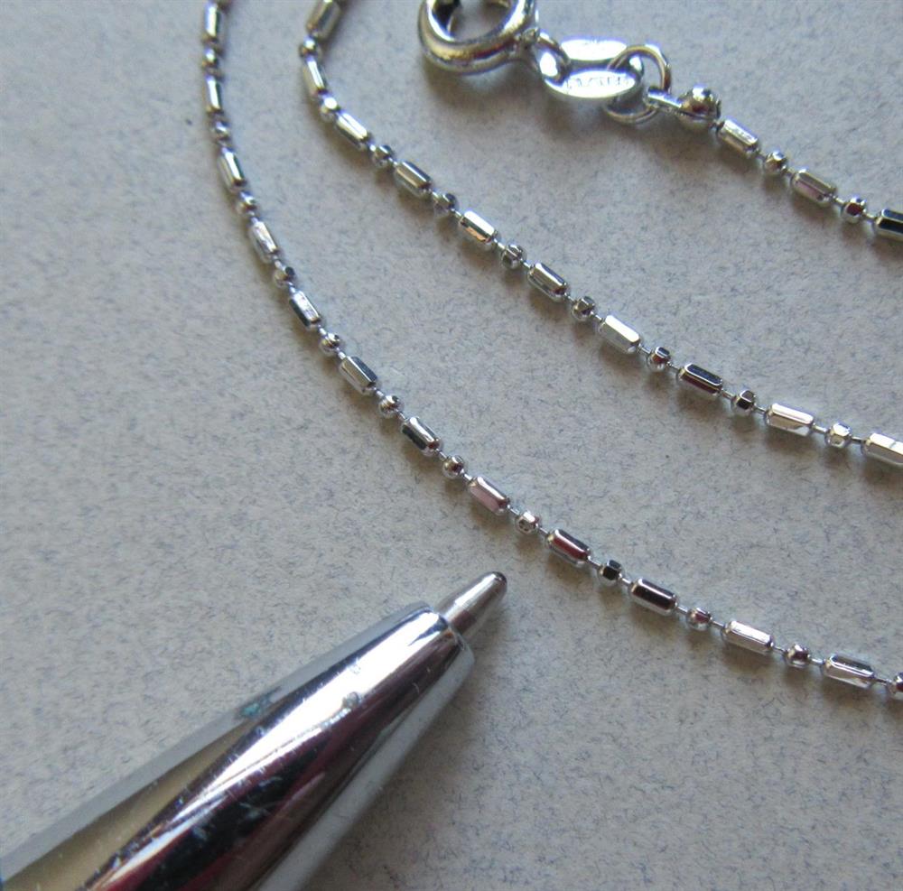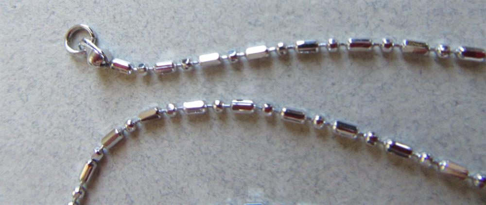 18k white gold plated chain. Unusual links! Clasp is signed (750 PLATE) 750 is an European gold mark. the chain measures 18" long. A magnet sticks to it, so the plate is not a thick plate. Please view last phot to see size of links.