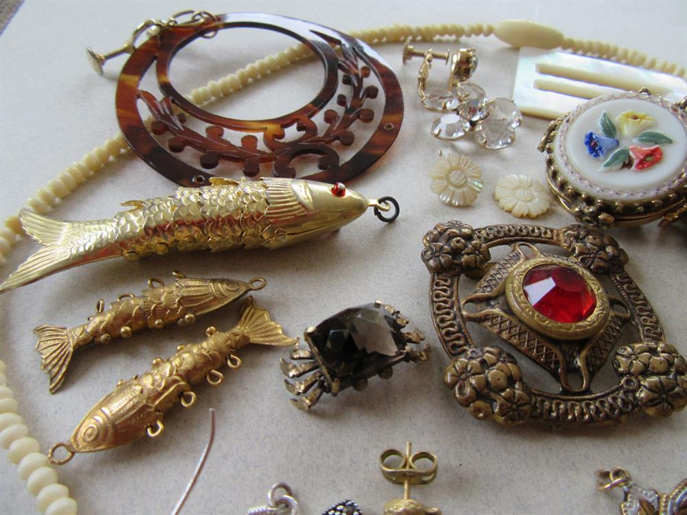 1920's and Up Jewelry Parts Lot Destash Carved Beads Doo Dads