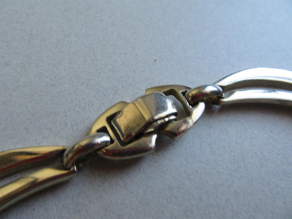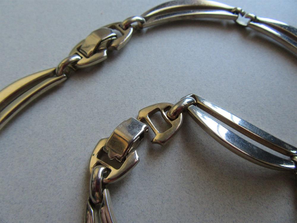 The necklace measures 15 1/2" long and the bracelet is 7 1/2" long. Good shape. Some wear.