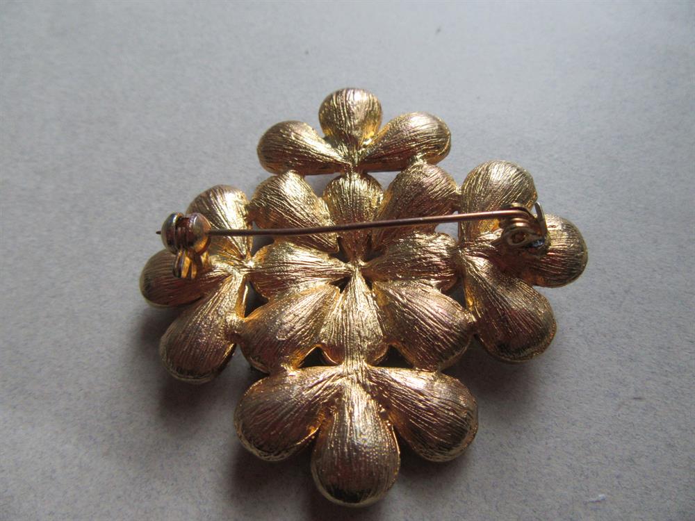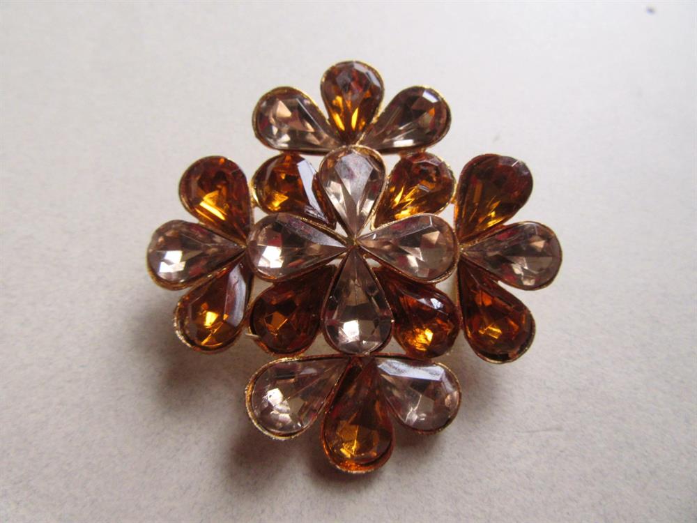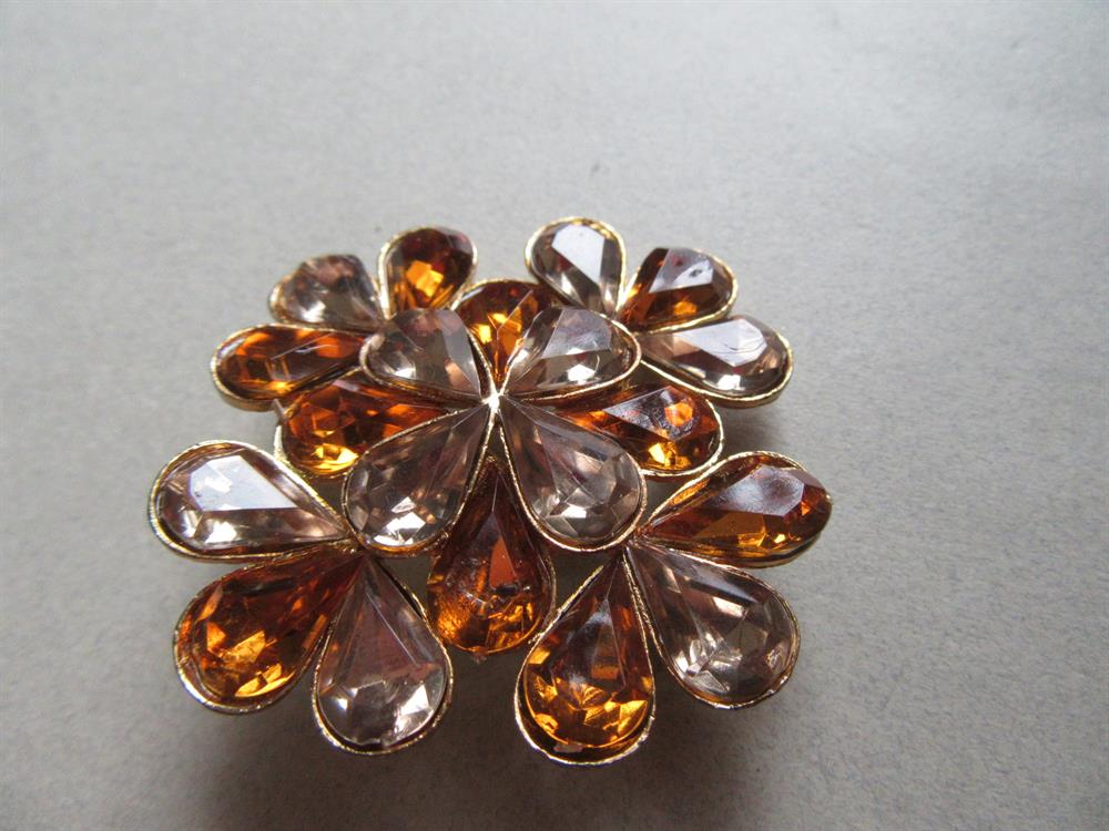 Vintage faceted lucite rhinestone pin. It measures 2 1/8" across,