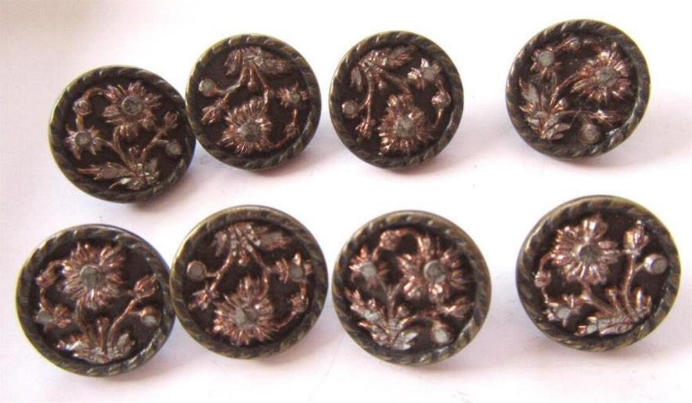 Antique Button Lot Metal Floral 8 Count Sewing Notions