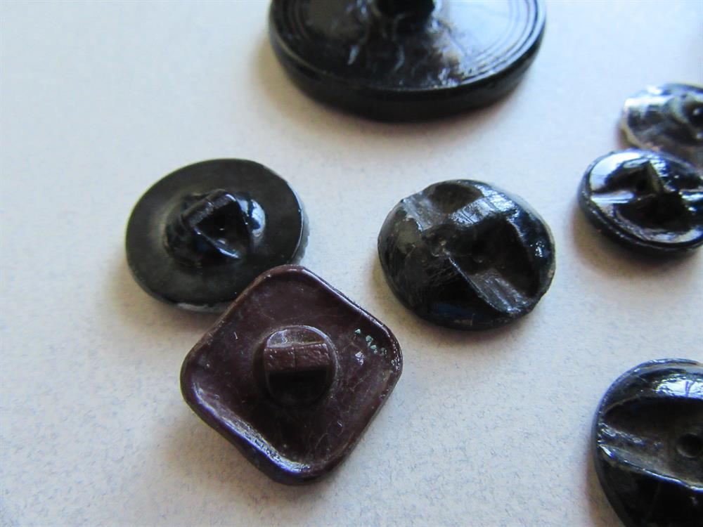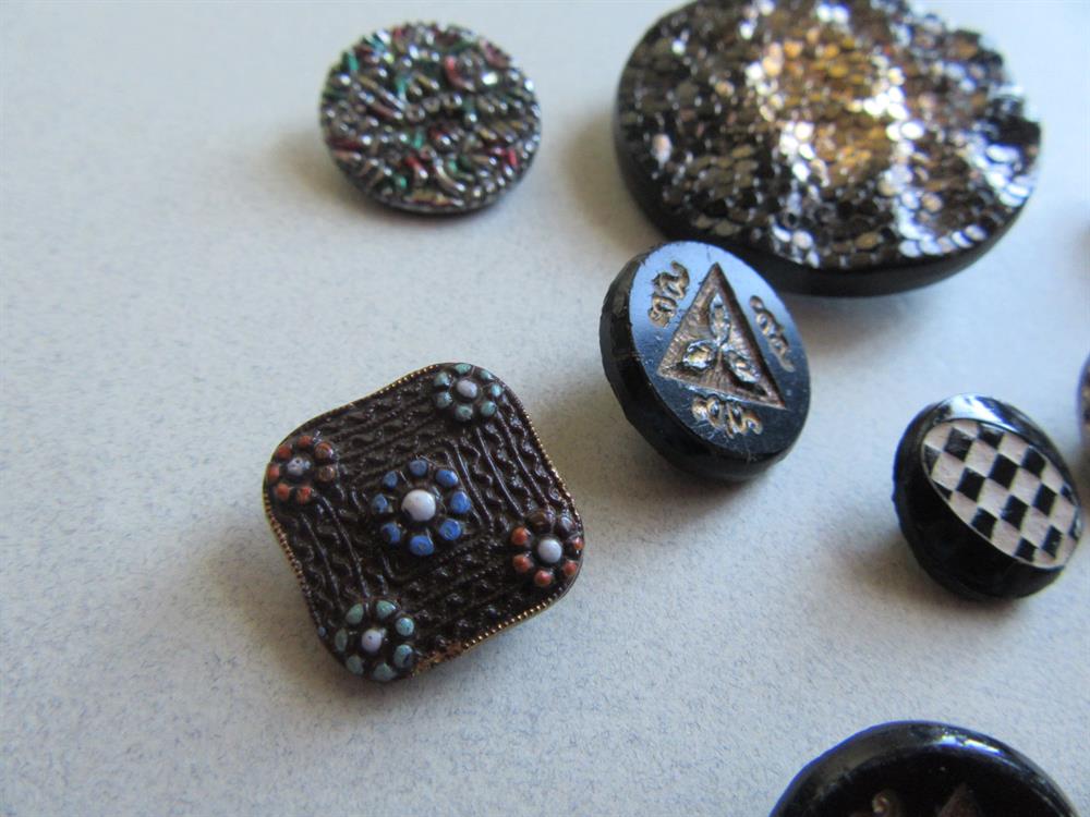 Antique buttons lot. Assorted styles. Great buttons for crazy quilts or other projects. A few nips on the backs. Otherwise good shape. The largest button pictured in the back is 1 1/2". across.