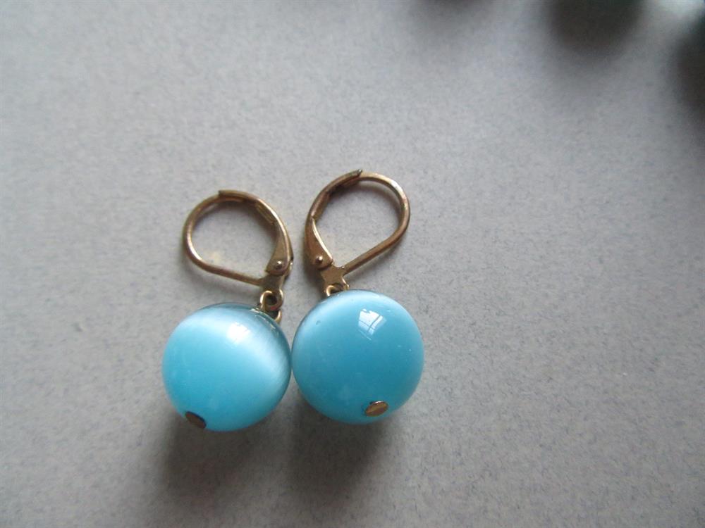 Aqua blue "cat eye" HEAVY glass necklace with matching pierced ball earrings.