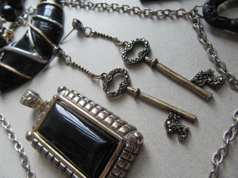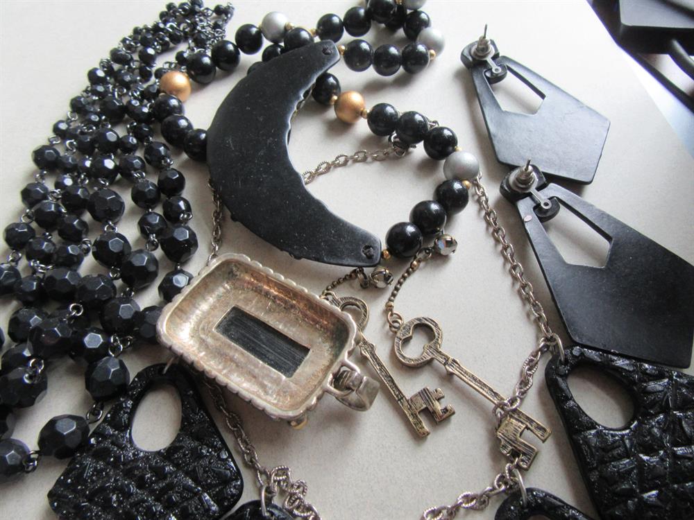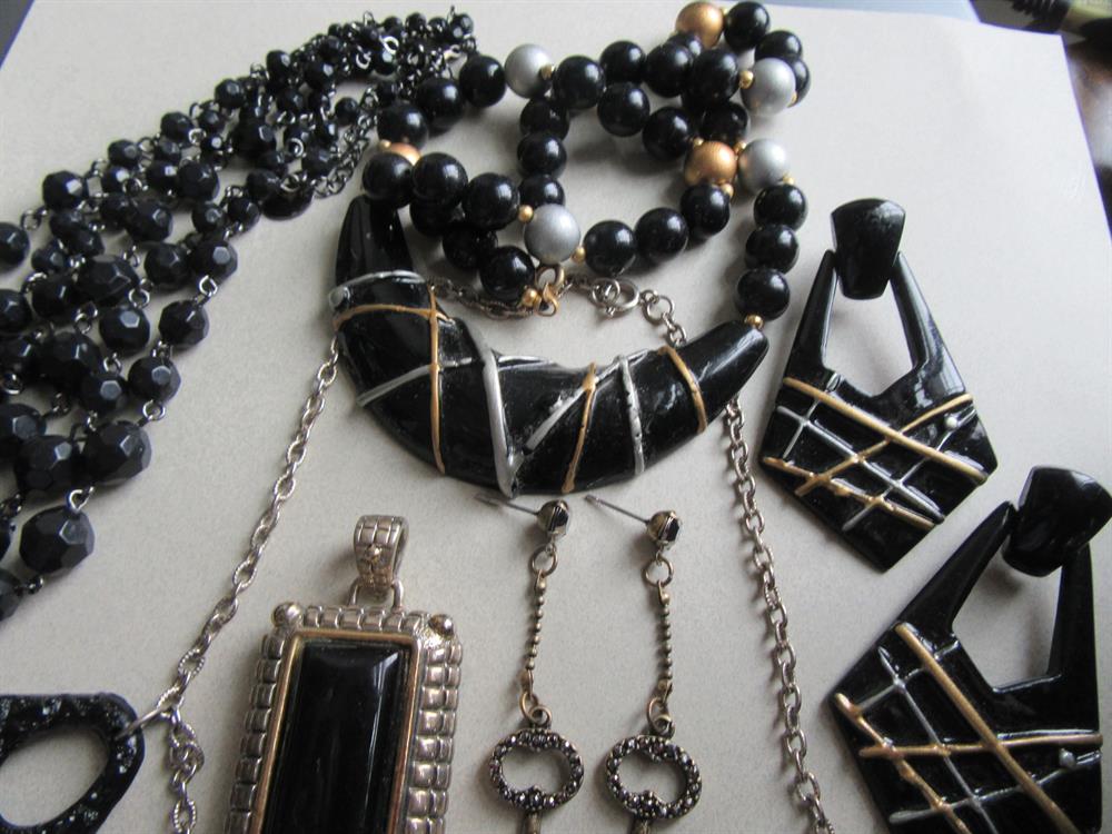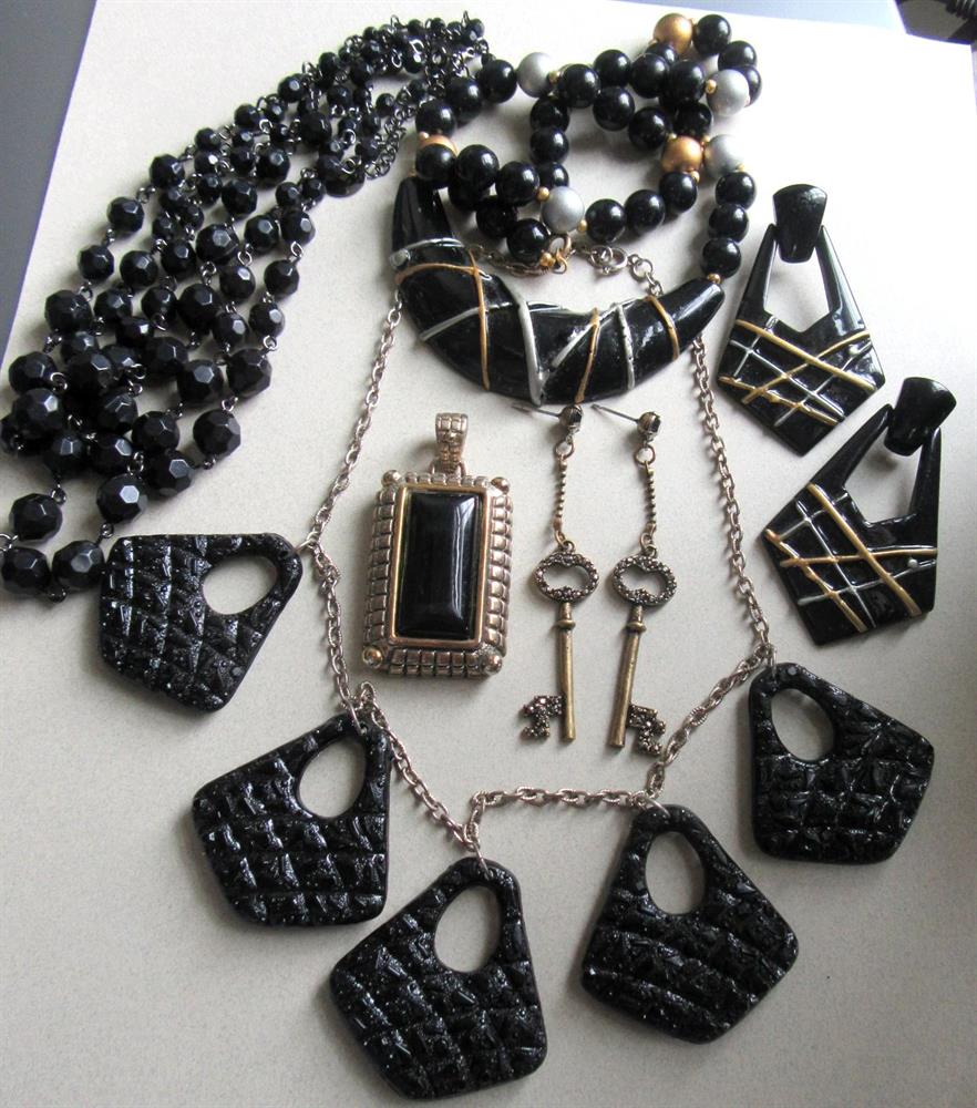 Black Jewelry Lot 1980's and Up Necklaces Earrings