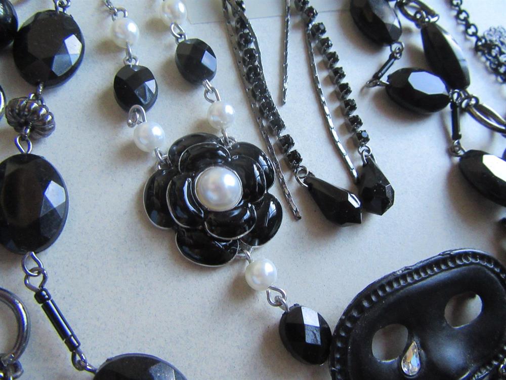 Black Jewelry Lot Necklaces Earrings Mask Pin