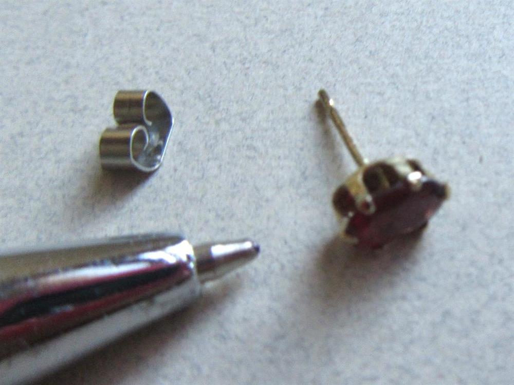 Genuine garnet gilt sterling silver stud earring. I placed a pen next to it in one of the phots so you can gage the size. Marked 925 (sterling) on the shaft. The earring back is not a match and it is not sterling and it is new.