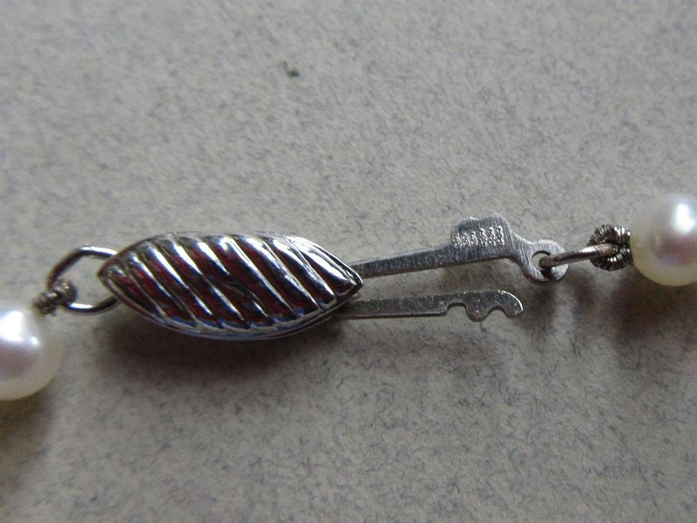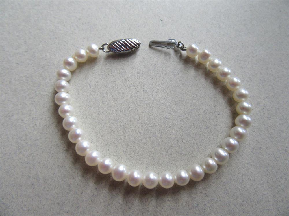 Genuine pearls baby bracelet with a 14k white gold clasp. It measures approx. 5" long.