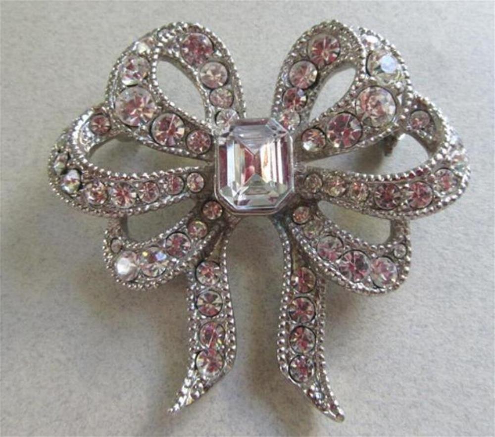 Monet Rhinestone Bow Pin Signed Vintage Jewelry