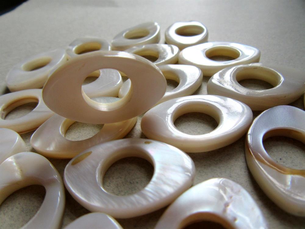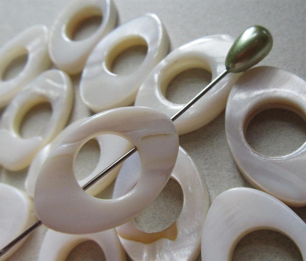 TWO DOZEN mother of pearl oval beads. All beads are of course one of a kind. They measure 1" long and will vary in thickness, texture and slight color variations as you can see. They have drill holes at the top and bottom. They are great for jewelry making, macramé, quilting and more.