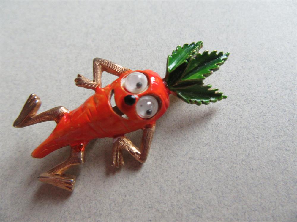 Vintage Anthropomorphic Google Eyes Carrot Pin on the rare side.