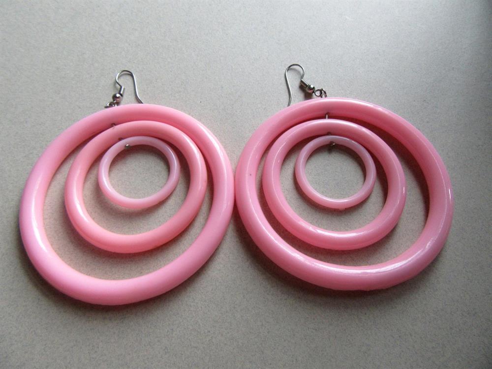 Vintage retro mod style pink concentric circles pierced earrings. Very cool the way the circles display.