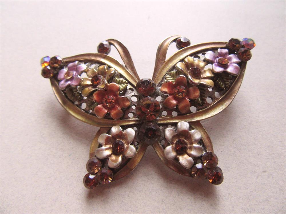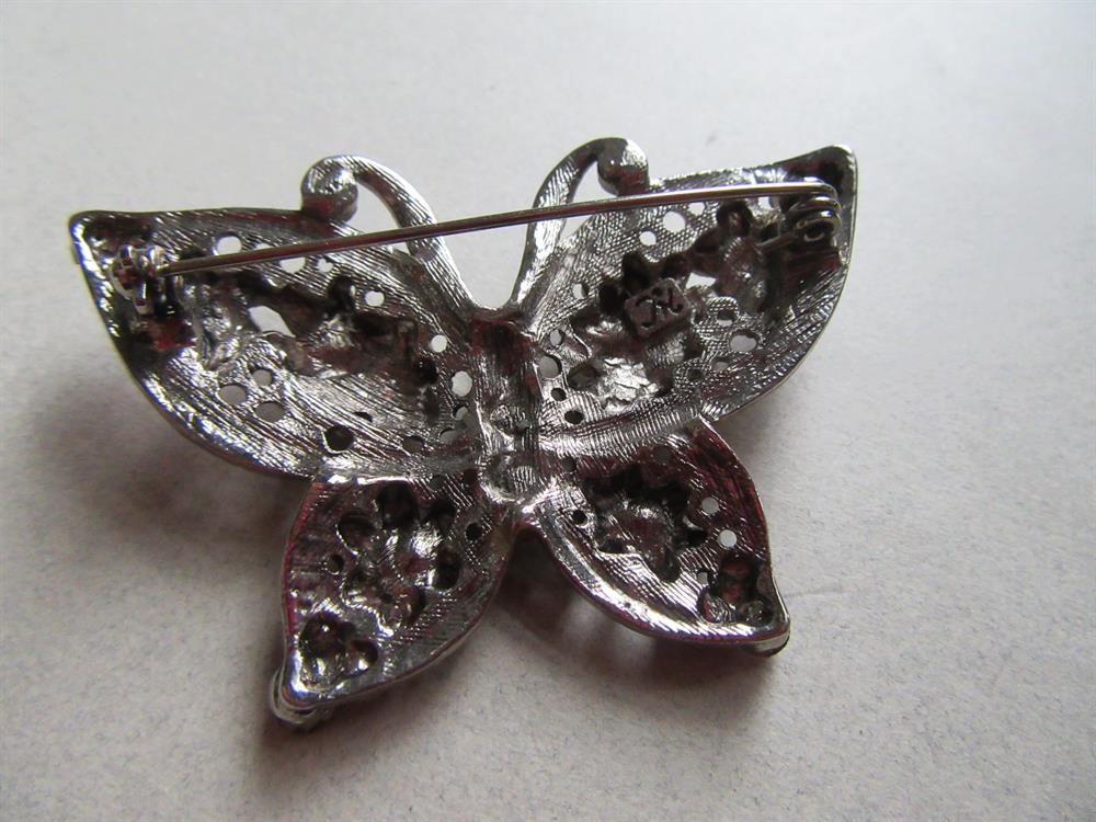 Rhinestone butterfly pin. It is signed either TK or TH.