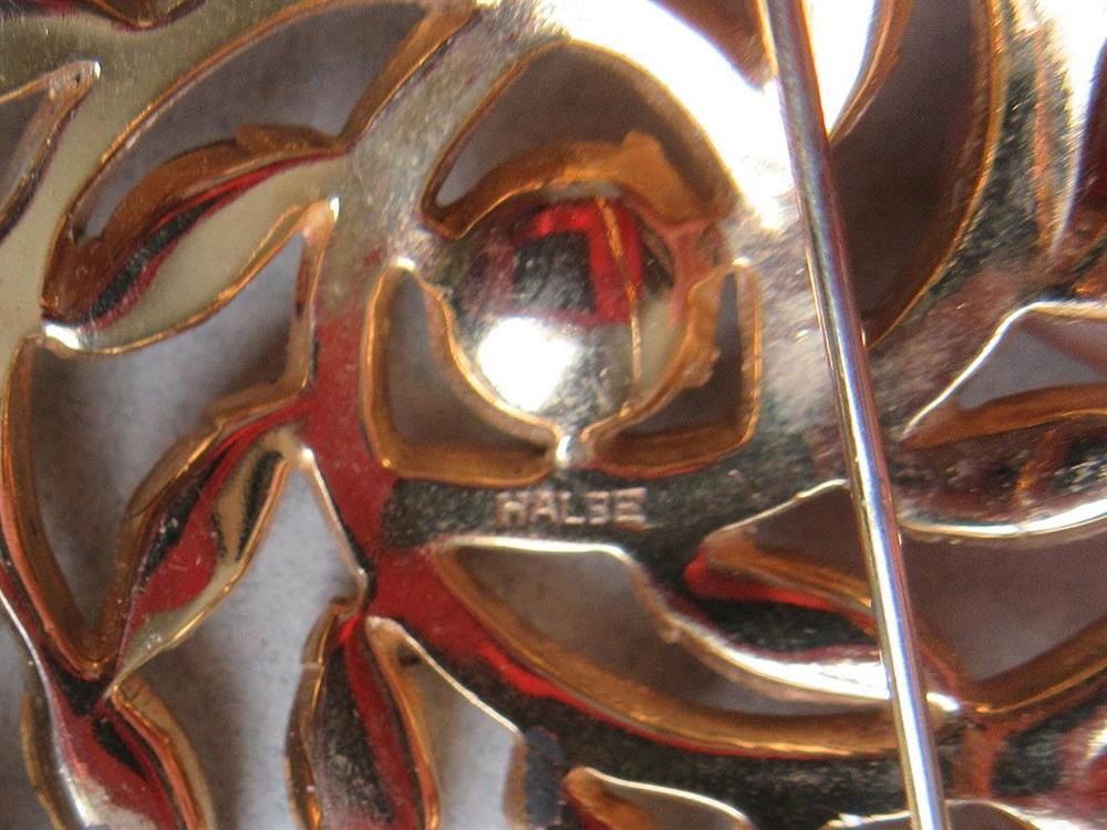 There is pin signed Halbe that has stones that has two stones that are ill fitting and look replaced. The rest is just pieces to be used for crafting , harvesting or whatever.