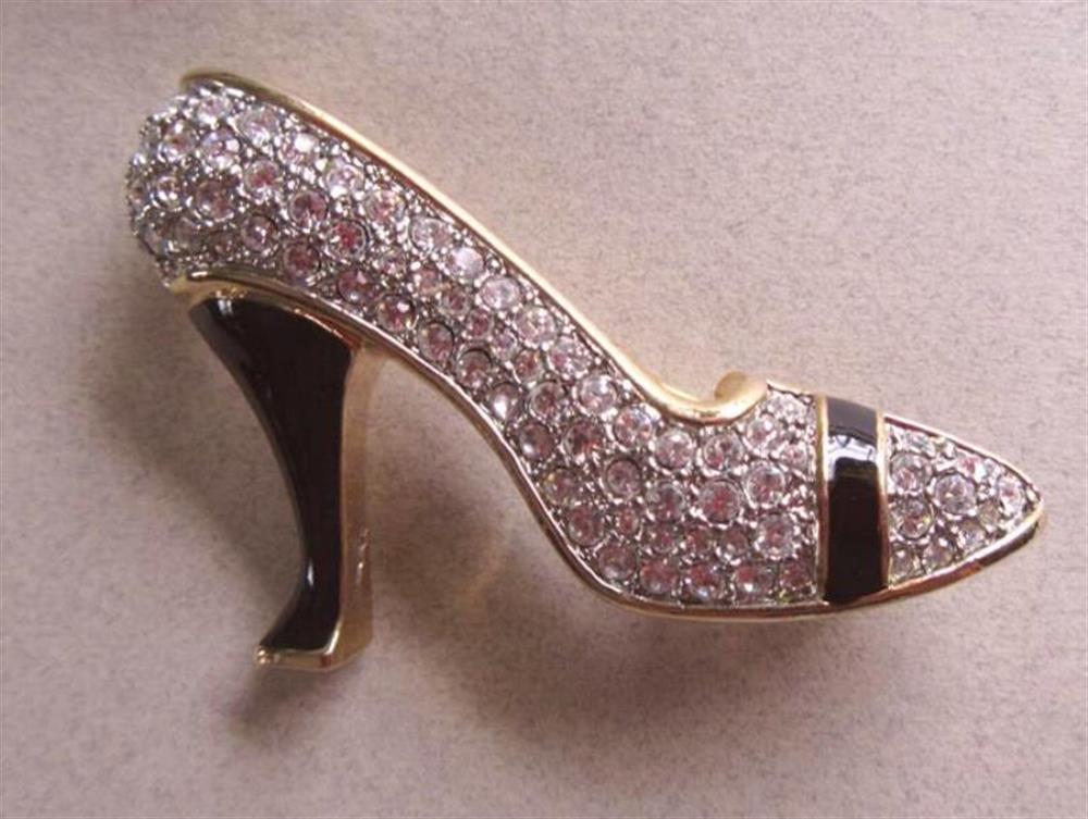 1990's glittery and high heel rhinestone pin. Never worn. Measures 2" long. Excellent shape.