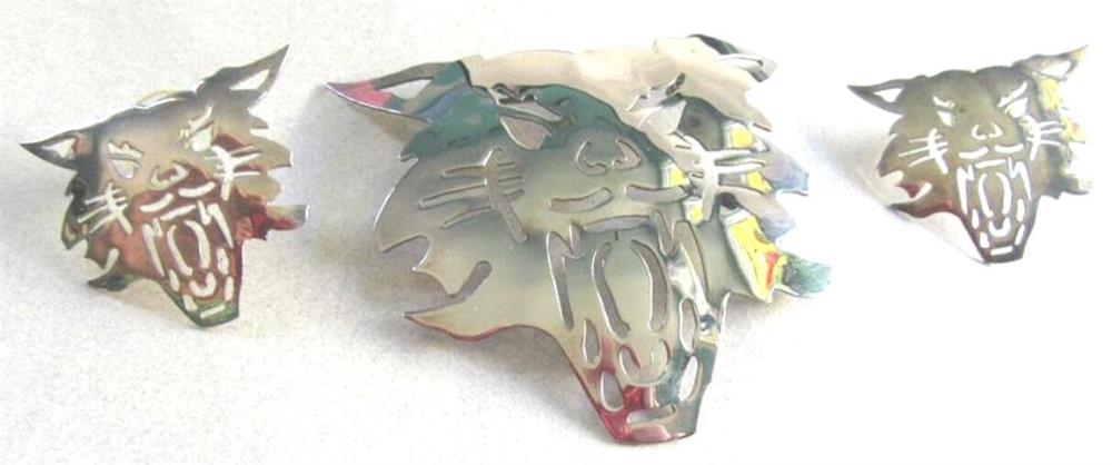 LARGE what I believe is sterling silver or sterling plate cougar pin and matching pierced earrings.