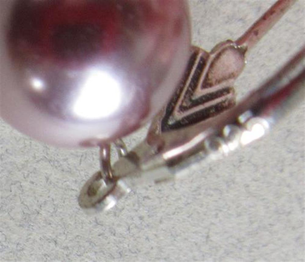 Sterling silver lilac faux pearl pierced earrings. they measure 2 1/2"long.