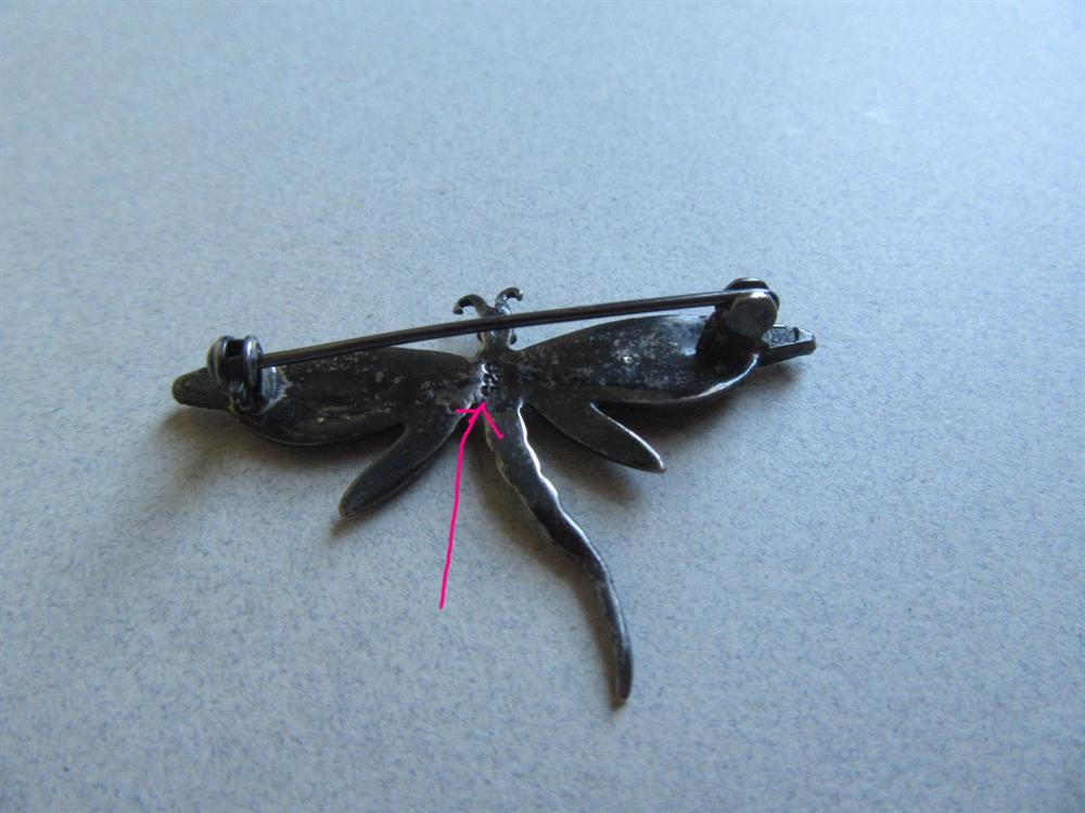 Sterling Silver Marcasite  Dragongfly Pin Mother of Pearl Inlay Figural