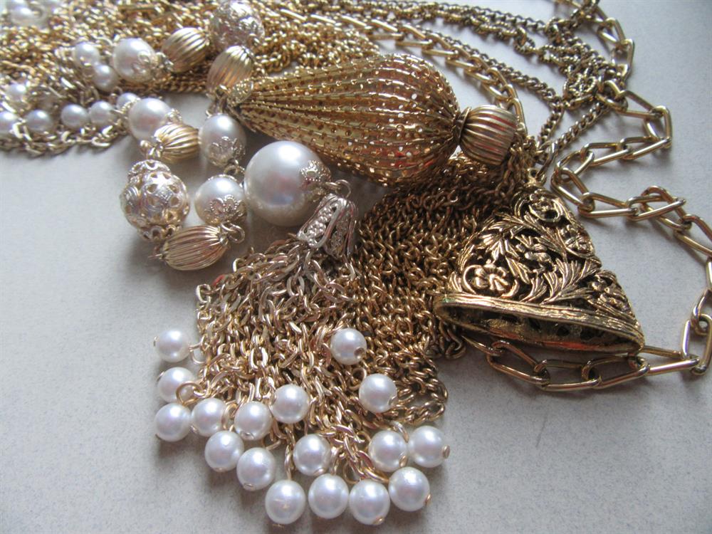 Three Vintage Necklaces Tassel Faux Pearl And More