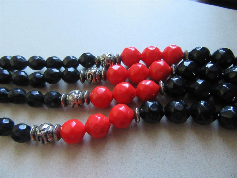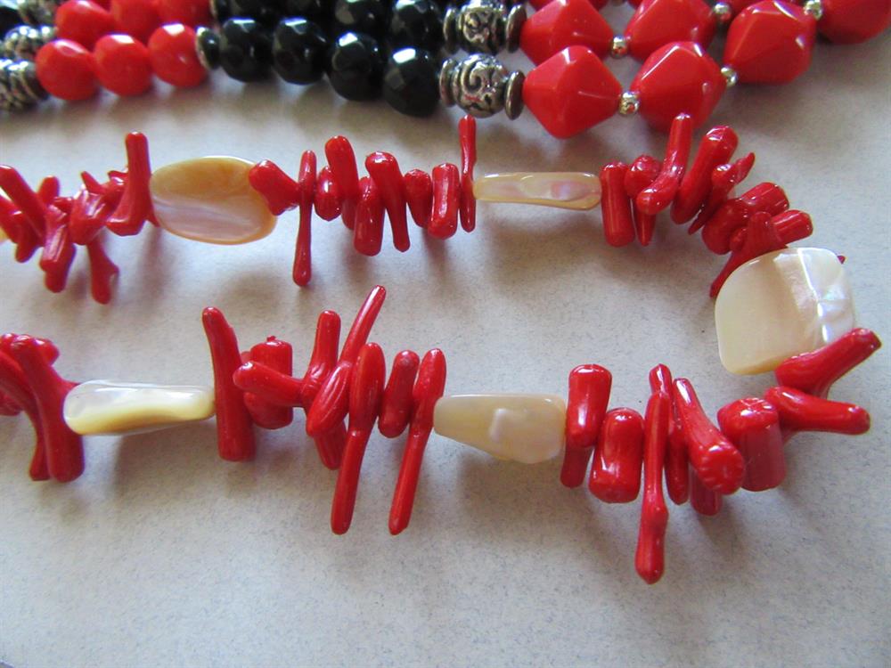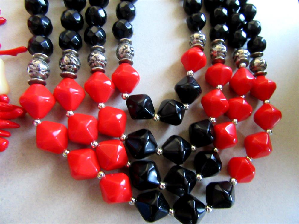 Two Necklaces Black Red Mother of Pearl