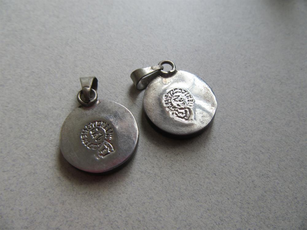 TWO Mexican silver pendants featuring an apple with a bite taken out. Backs are signed.