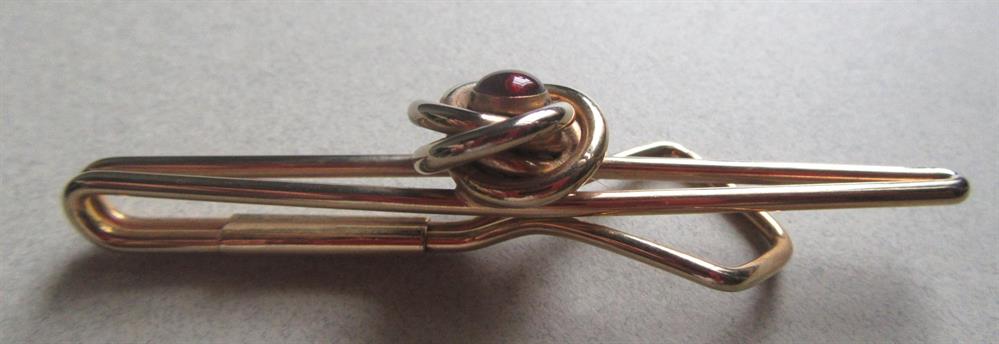 Vintage Swank signed 1class 940's knot tie bar with a dark red glass center. It is in wonderful shape with the exception of a little wear to the bezel. View 2nd photo. Not bothersome or very noticeable when worn as you can see in the 1st photo. . It measures 2 3/4"long.