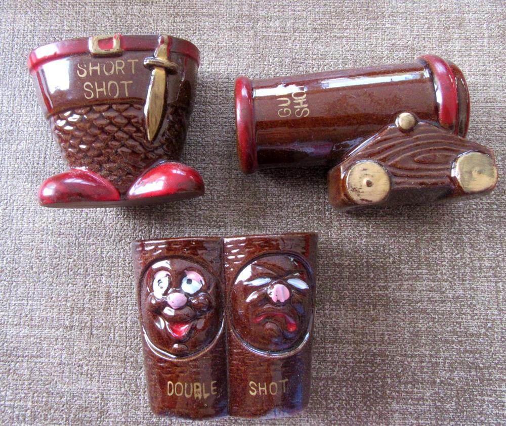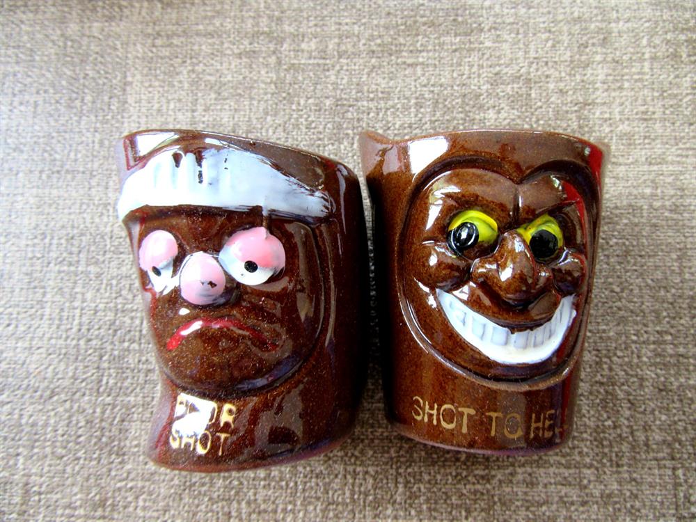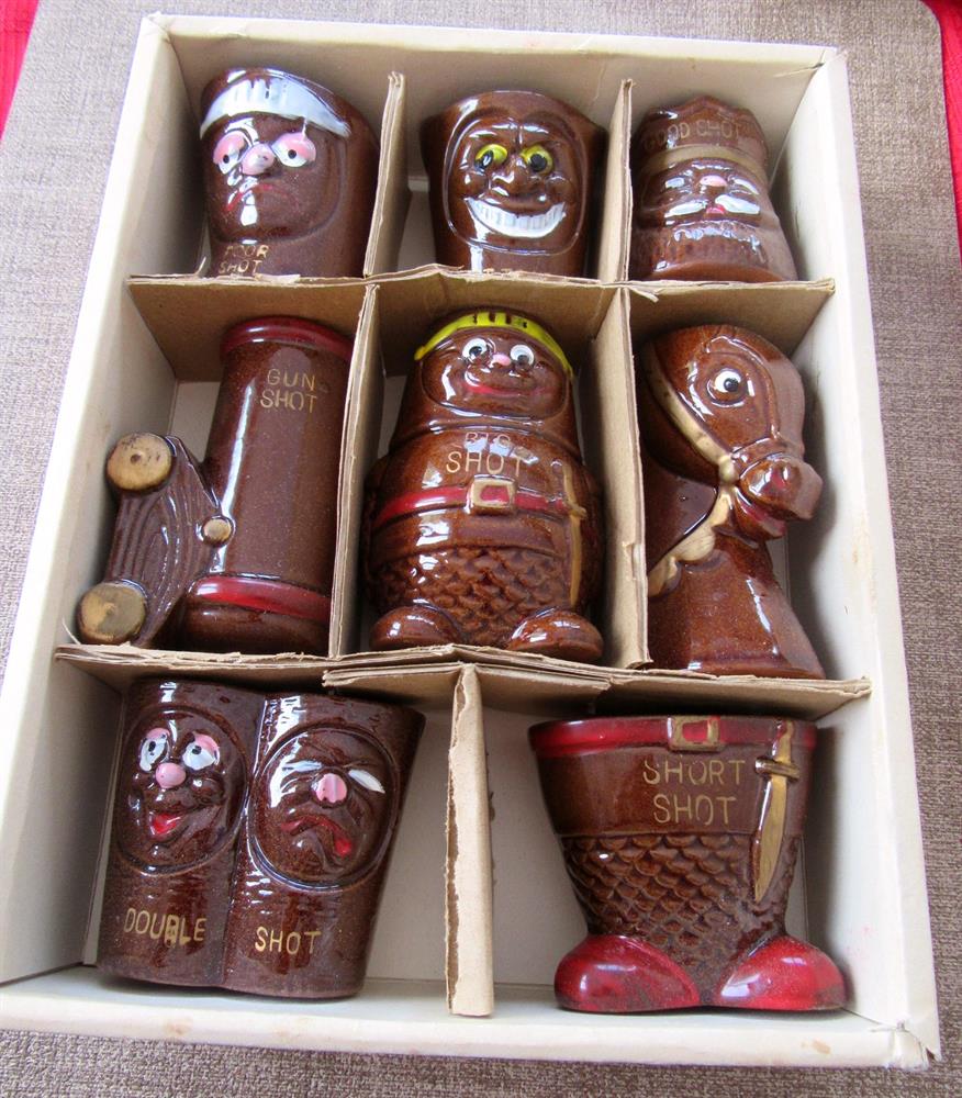 Vintage 1950's Comical Shot Glass Set Japan Tiki Bar