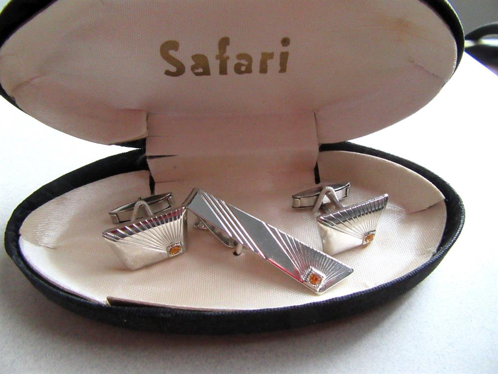 Vintage early 1950's "Safari" tie clip and cufflinks set.