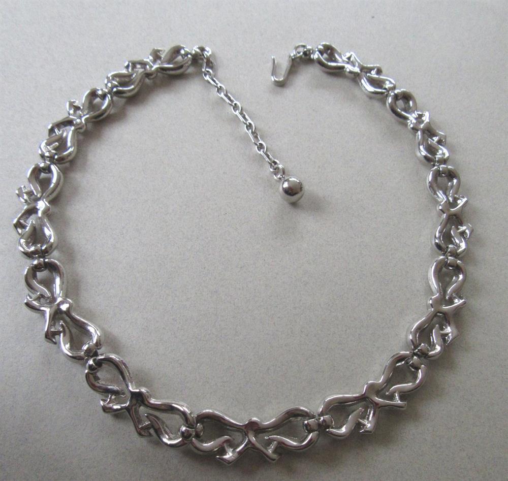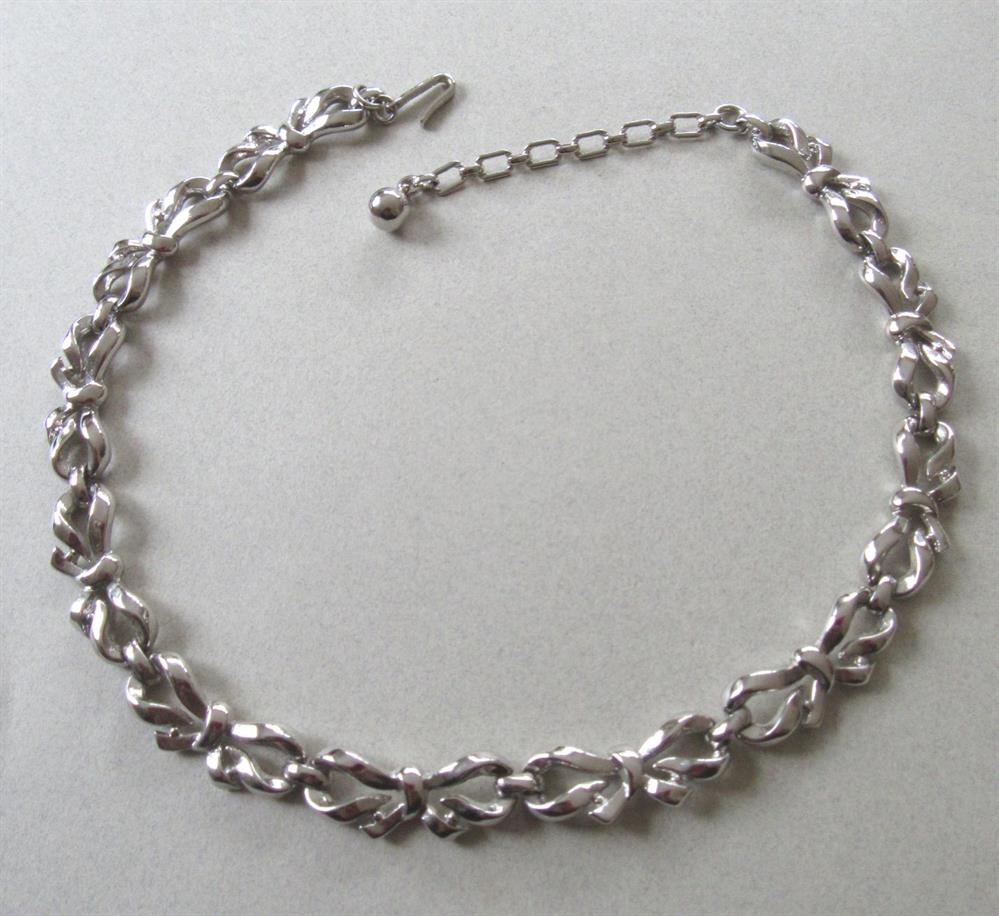 Vintage 1950's Trifari Silver Tone Bow Choker Necklace Signed Jewelry