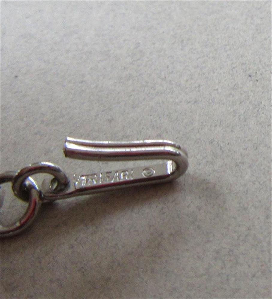 Vintage 1950's signed Trifari silver tone bow choker necklace. It measures16 " from tip to tip. Excellent shape. Signed on the underside of the hook.