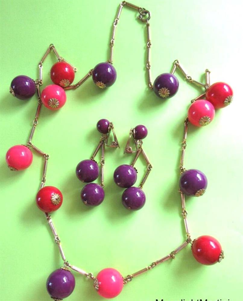 Ultra fab and flirty hard to find 196's vintage original ball necklace with matching clip dangle earrings.