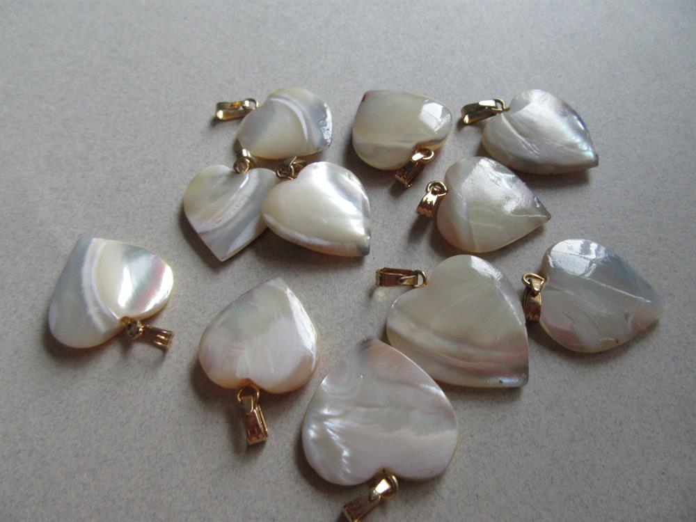 Eleven vintage 1970's genuine mother of pearl tropical heart pendants lot featuring hand painted palm trees and sunset. Each is unique in design. Never used. Some have some wear. You can also scrap all the paint off and just have a plain mother of pearl heart.
