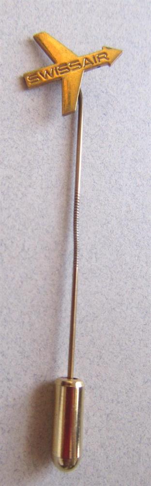 Vintage 1970's Swiss Air stick pin. It measures 2 1/2" long. Back reads Huguenin le Locle. Slight bend in the shaft. Sold as is.