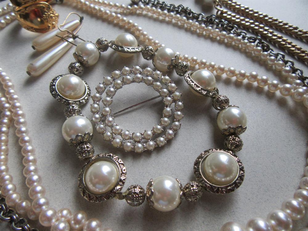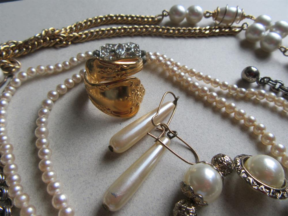 Vintage And Up Faux Pearl Jewelry Lot And Spoon Ring