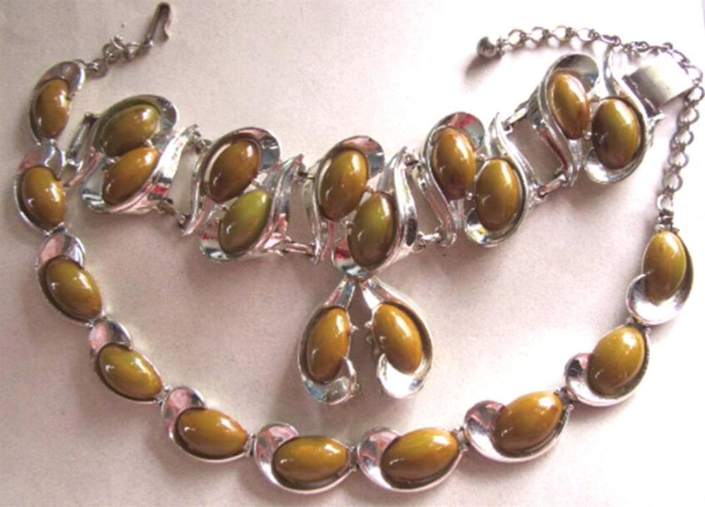 Signed on the backs of the bracelet and earrings. No wear to the backing on either piece except a few links on the back of the bracelet. Not worth mentioning and no big whoop.