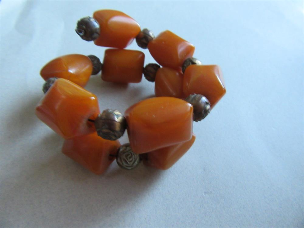 Vintage genuine bakelite dark butterscotch memory wire chunky bracelet.