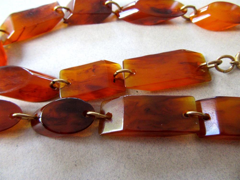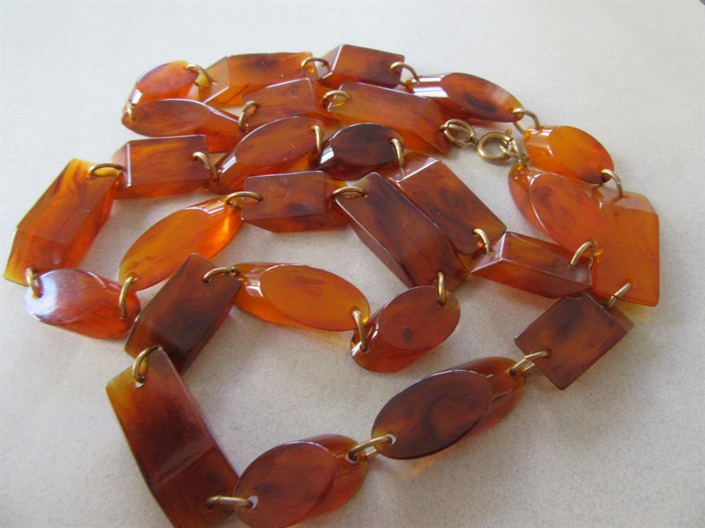 Vintage Bakelite Necklace Mid Century Iced Tea Tortoise