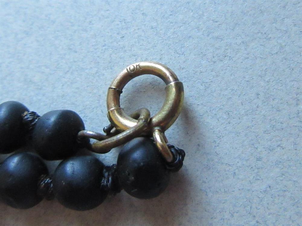 Vintage Black Beads Necklace With 10K Clasp Gutta Percha? Vulcanite? Bog Wood?