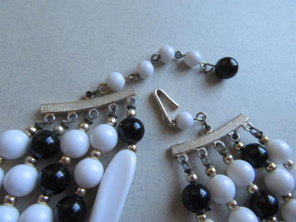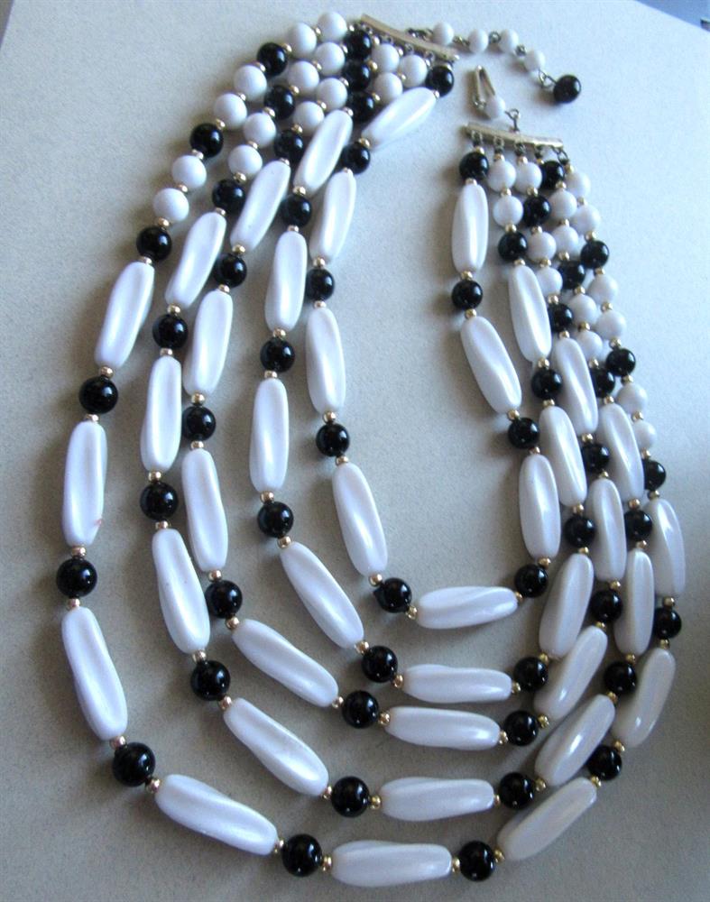 Vintage Black and White Multi Strand Necklace Hong Kong