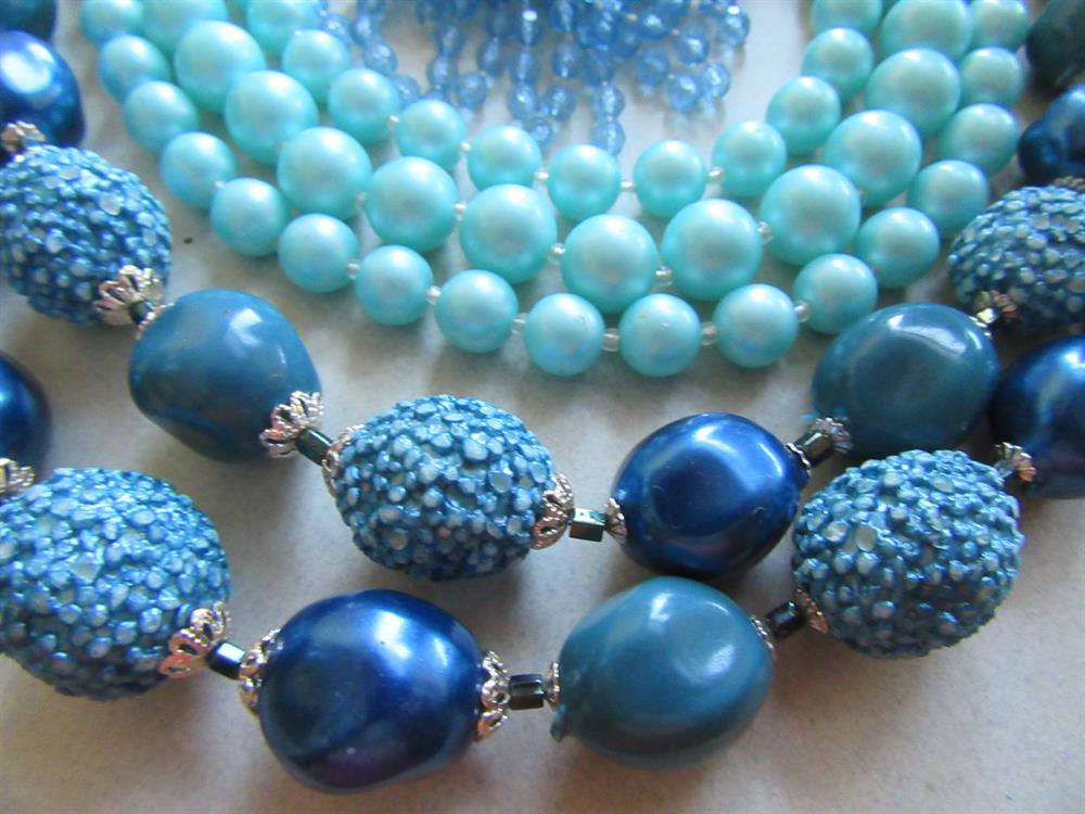 Vintage Blue Jewelry Lot Germany 1960's Shoe Clips and Two Necklaces.