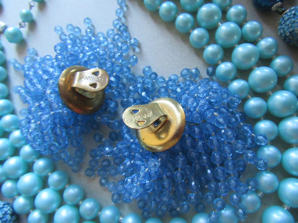 Vintage Blue Jewelry Lot Germany 1960's Shoe Clips and Two Necklaces