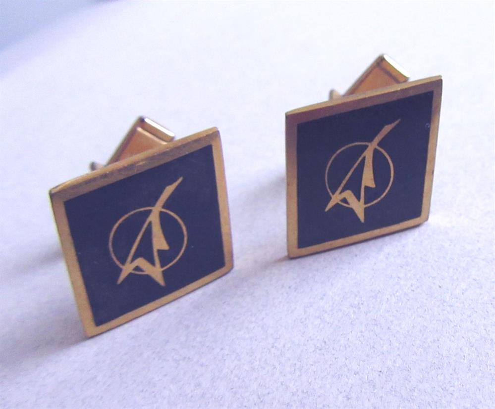 Vintage Canadian Pacific Airline Cufflinks and Tie Tac Set. The fronts measure 1" from tip to tip. The center color is a dark blue. Pretty good shape!