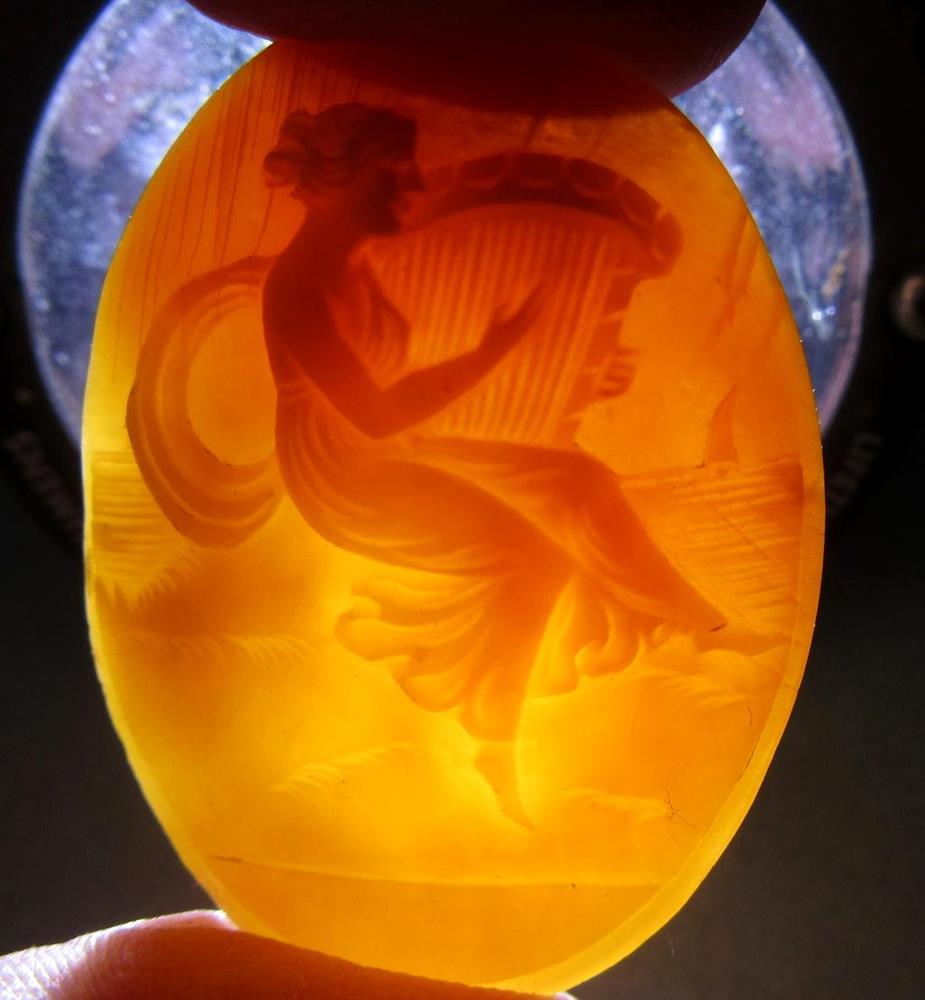 Vintage Carved Cameo Cabachon Women Playing Harp Jewelry Making Destash