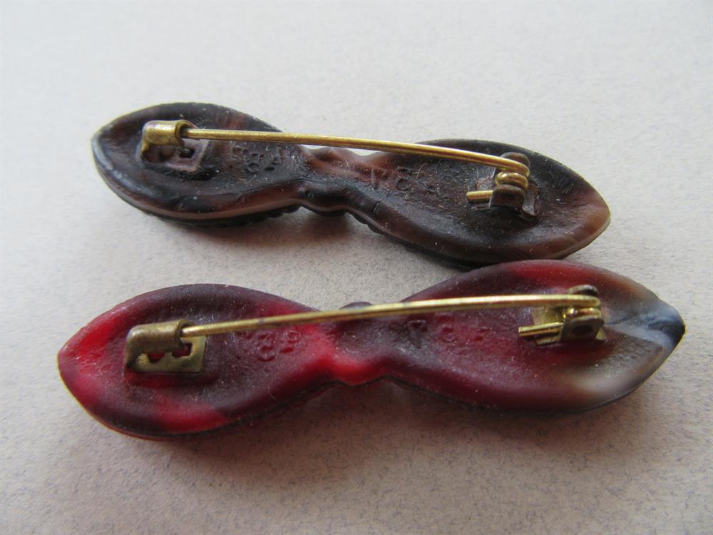 They were purchased from a factory long ago that is now closed. Brass pin back is in fabulous working order.