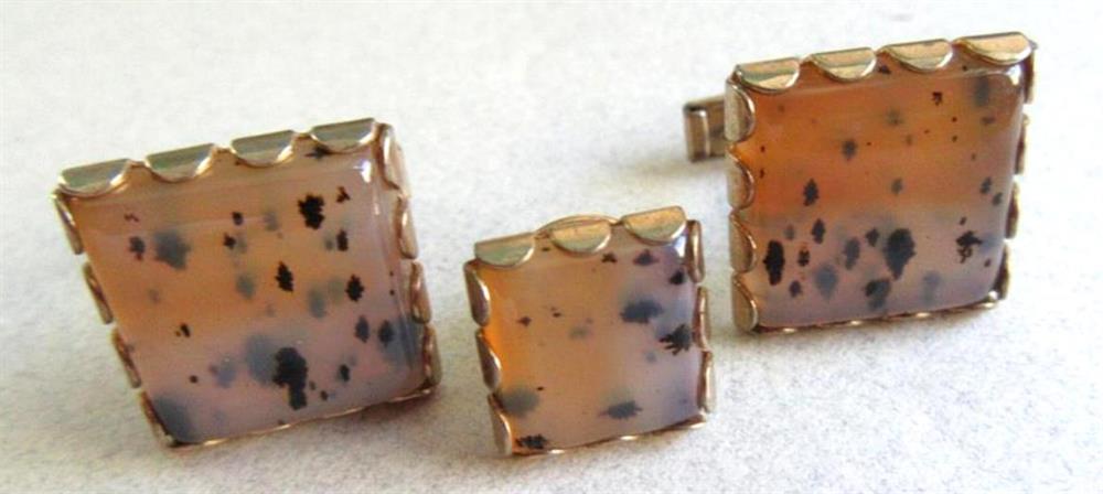 Nice mid century vintage set of jasper dalmatian stone cufflinks and tie tac set.