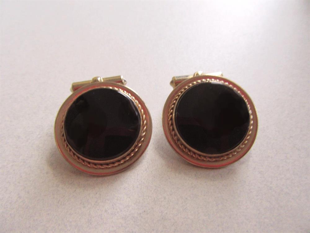 Vintage Destino Black Onyx 1/20th 12k Gold Filled Cufflinks Shirt Accessories