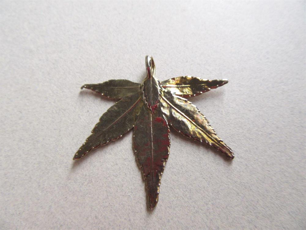 Vintage dipped pot leaf pendant. Measures 1 1/2" long. Great shape!