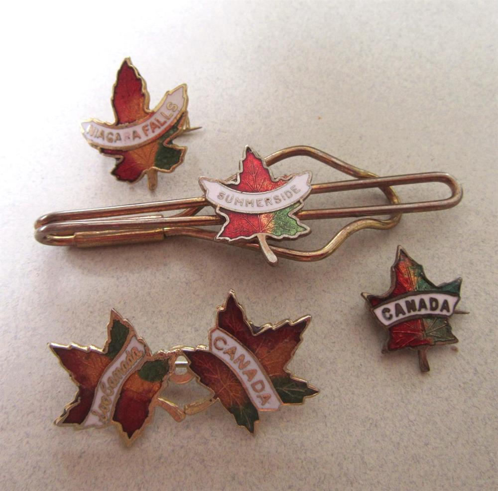 Vintage Enameled Maple Leaves Canada Souvenir Pins and Tie Bar Summerside Niagara Falls