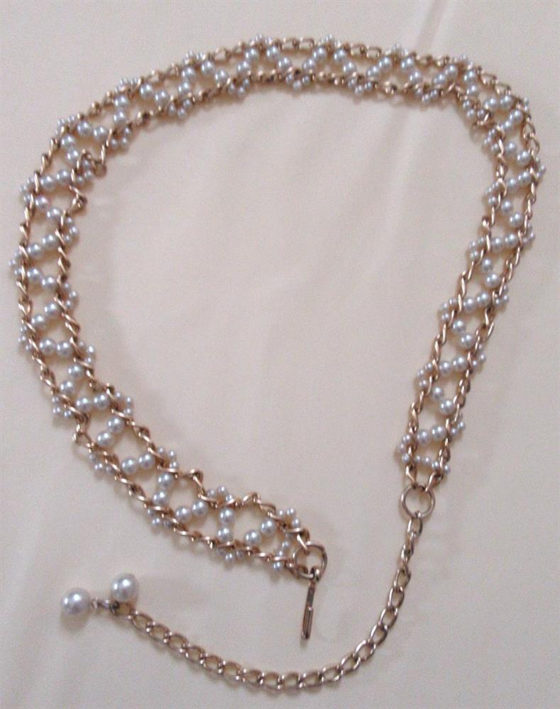 Vintage Faux Pearl Chain Belt Hong Kong 1960's Accessories
