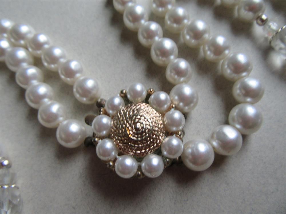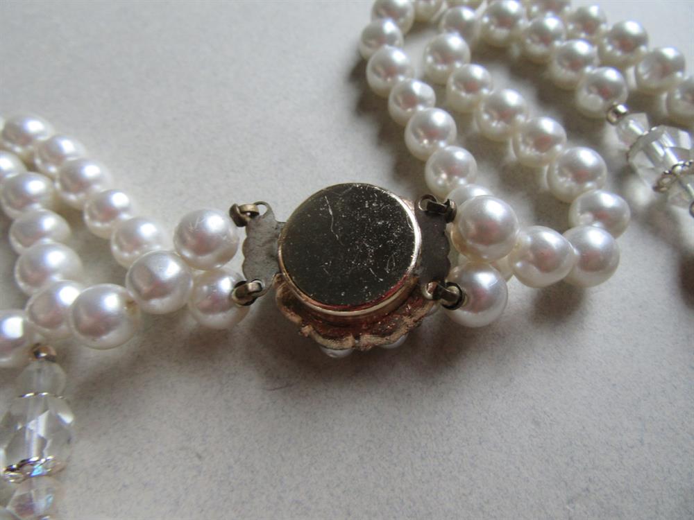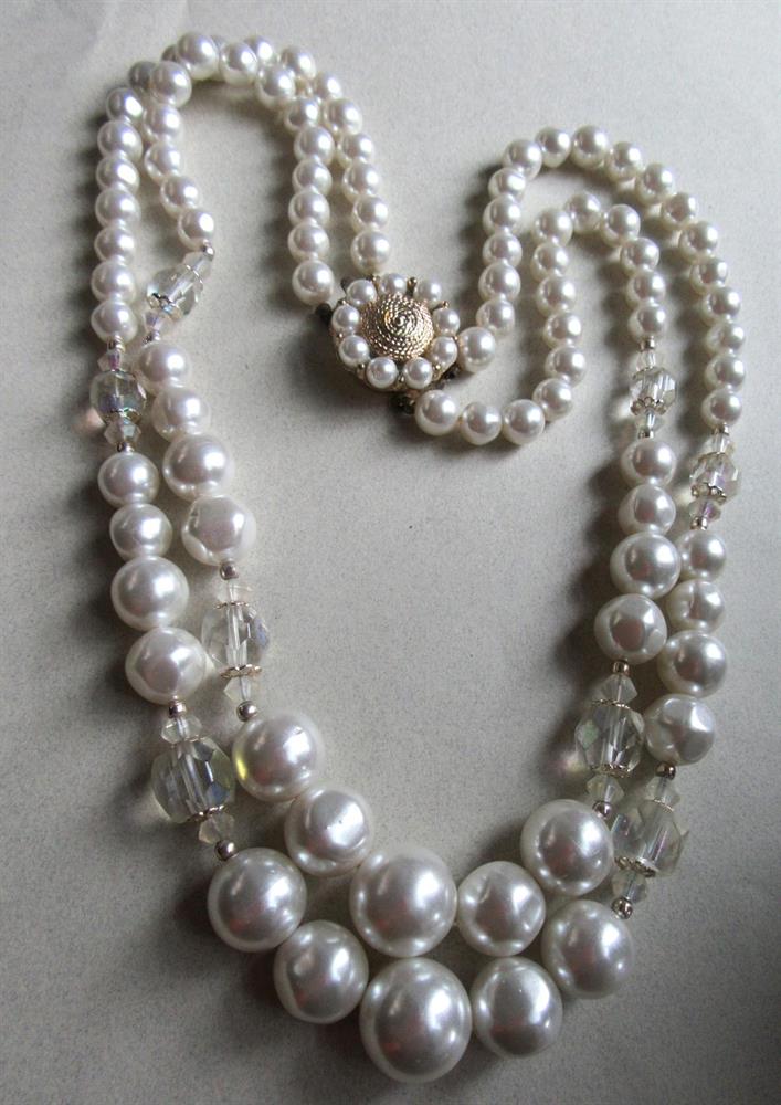 Vintage faux pearl and crystal double strand necklace in wonderful shape.